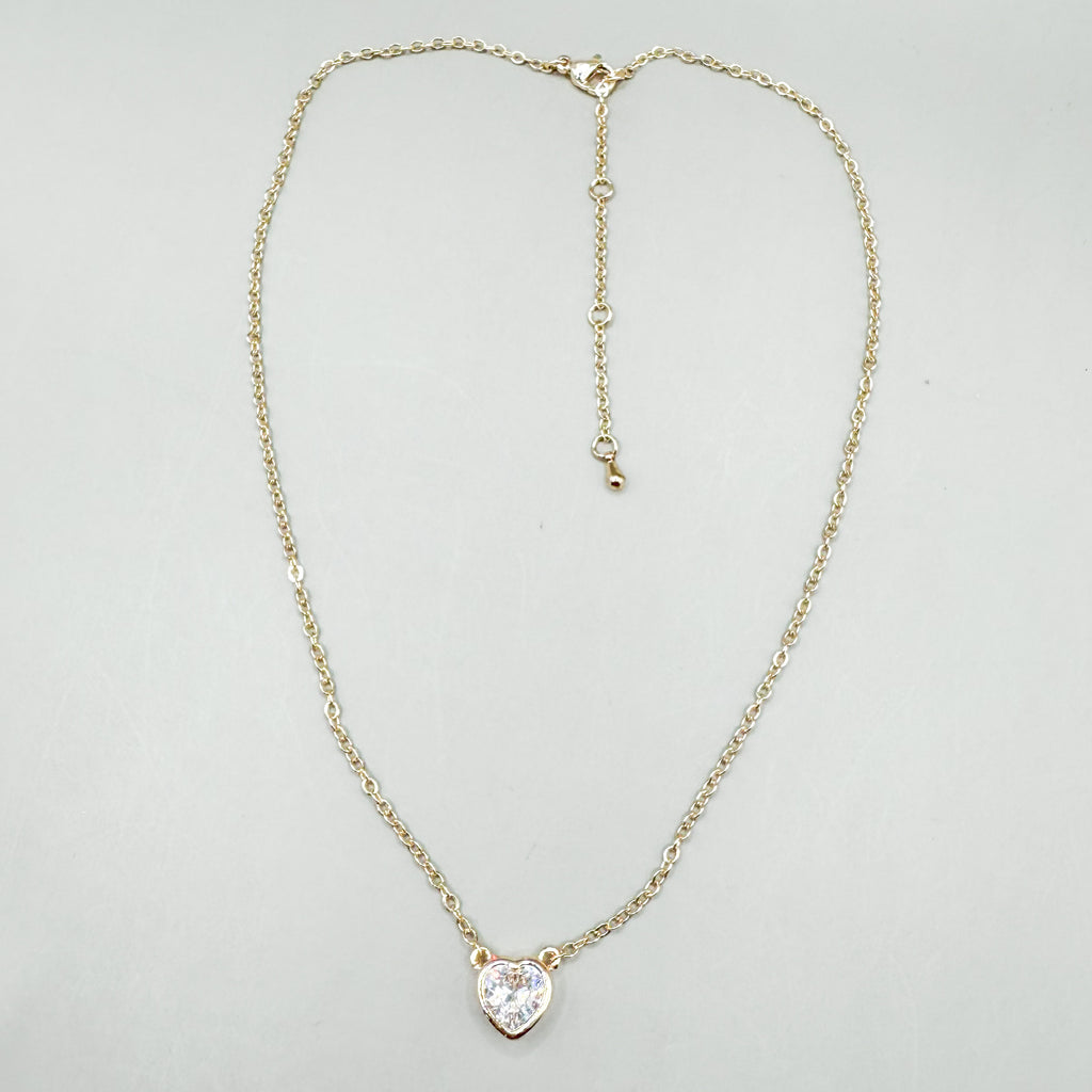 A timeless piece that captures elegance in simplicity. Features a brilliant heart shaped cubic zirconia centerpiece set in polished yellow gold plated brass. It's delicate chain adds a touch of sophistication, making it perfect for both everyday wear and special occasions. A symbol of love and light, this necklace shines beautifully on any neckline.