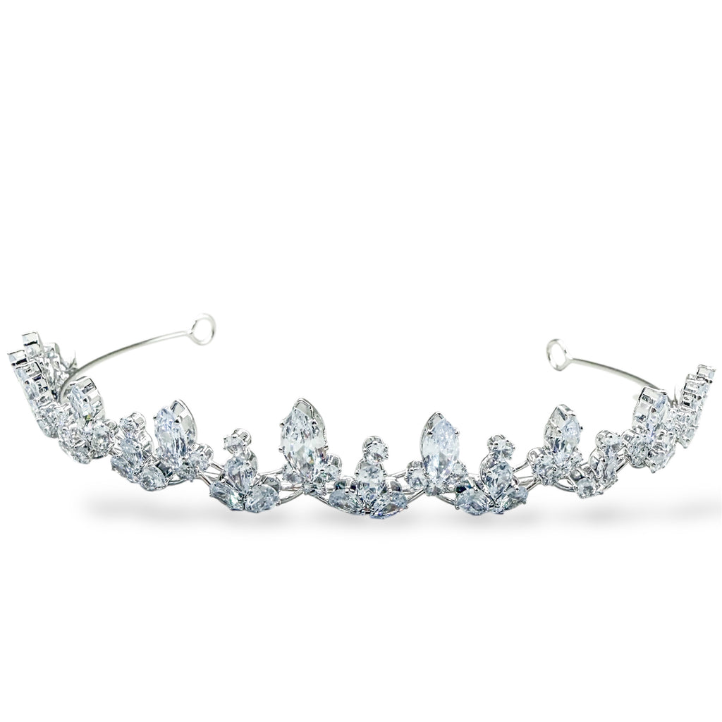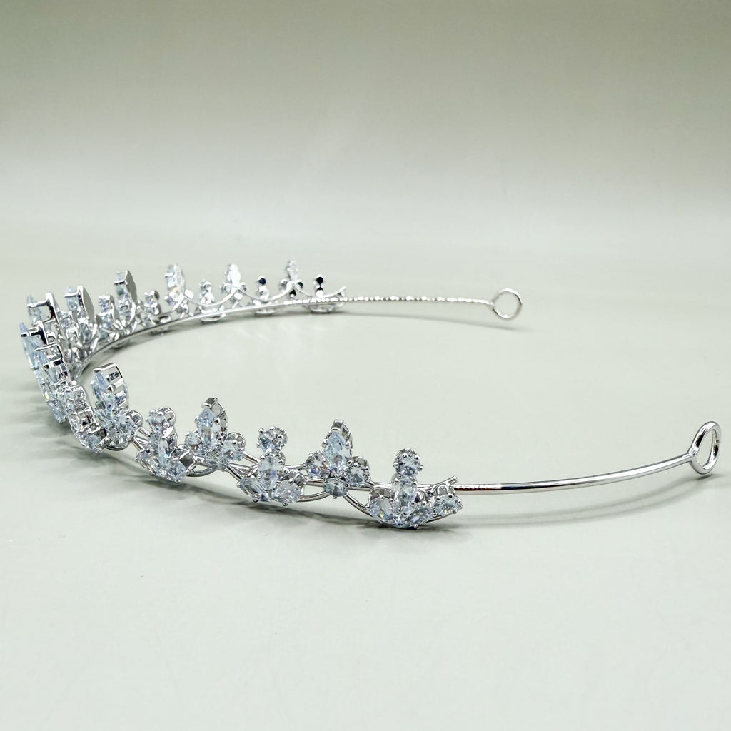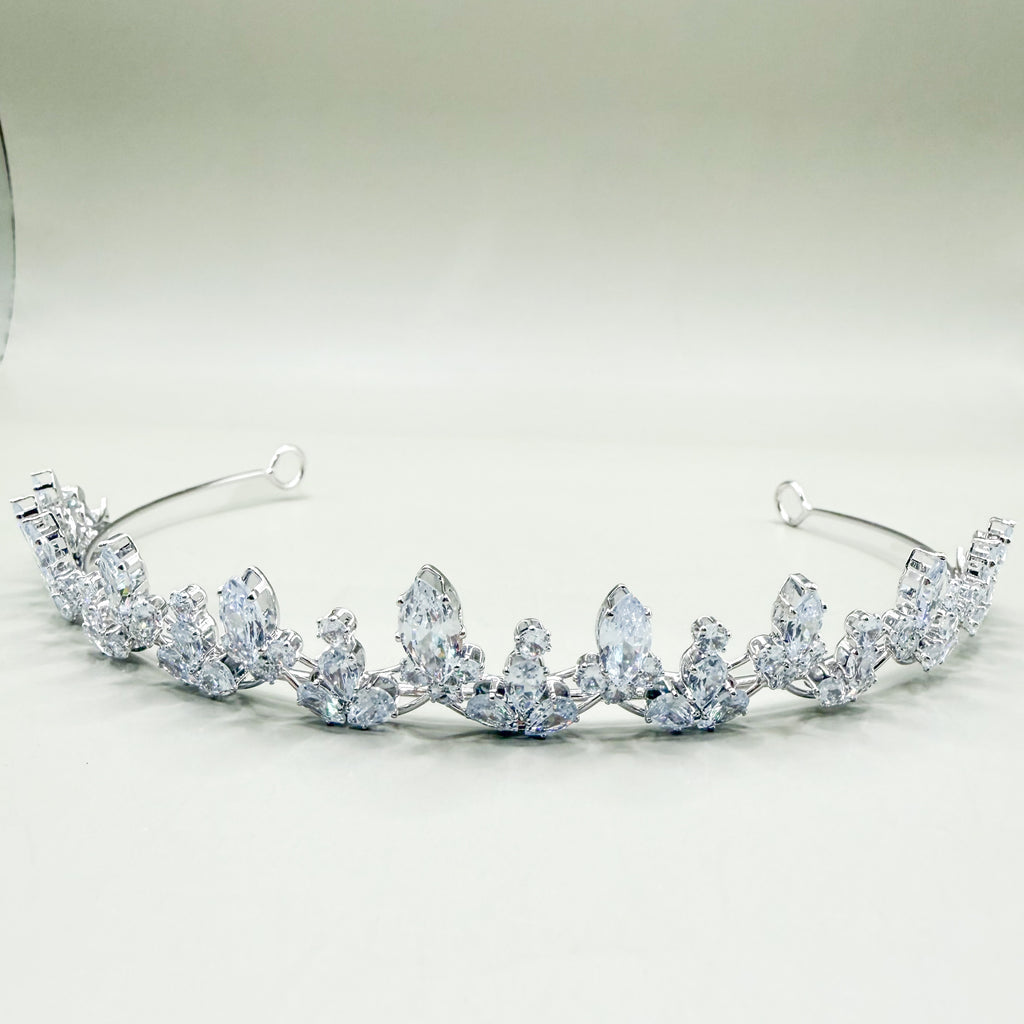 This stunning crown features a delicate arrangement of sparkling marquise and round-cut crystals set in a sleek silver-tone frame. Designed with a graceful floral pattern, each crystal catches the light beautifully, creating a radiant shimmer from every angle. The lightweight, open-ended design with side loops ensures a secure and comfortable fit, making it perfect for brides, pageants, proms, or any special occasion.