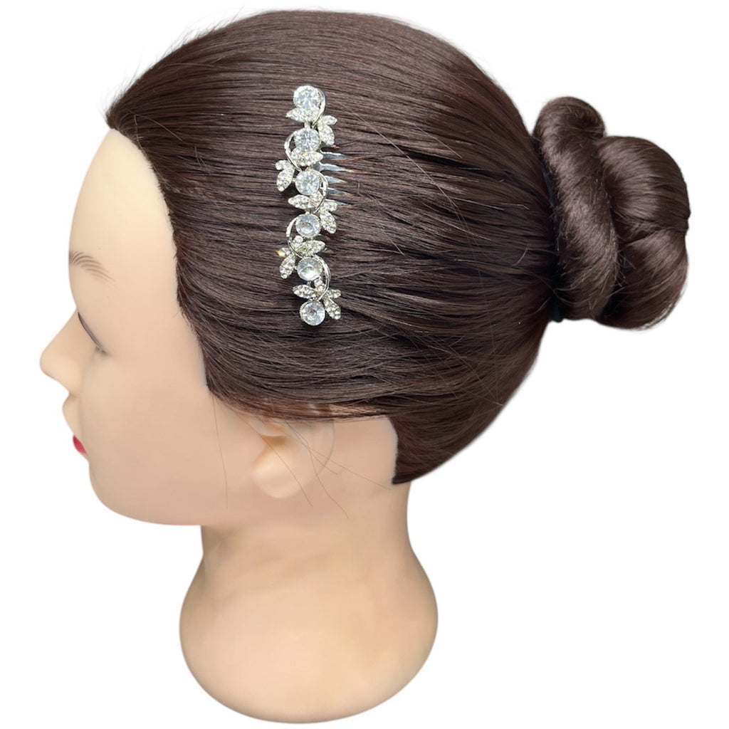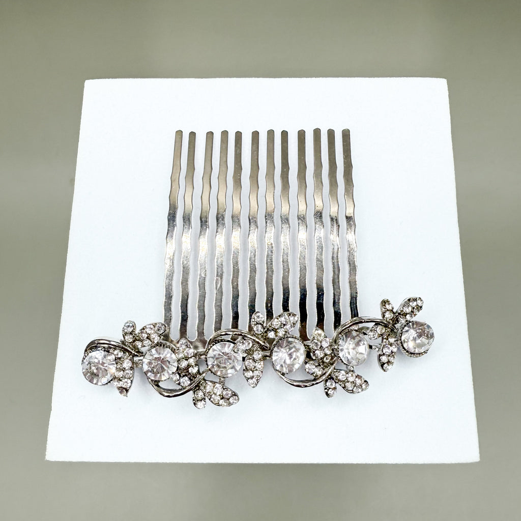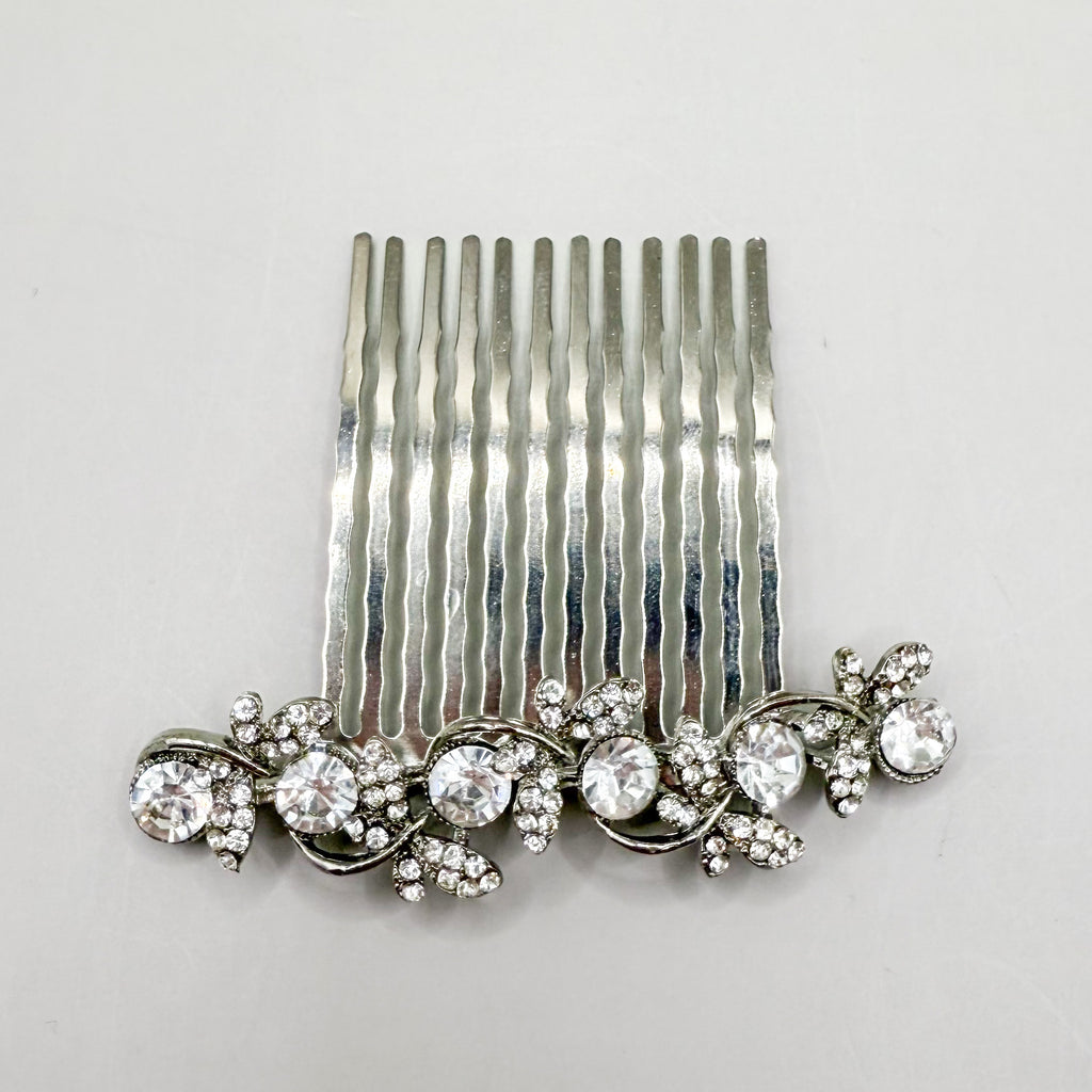 A charming headpiece featuring an elegant row of sparkling butterfly accents. Each butterfly is embellished with brilliant stones that catch the light beautifully, adding a soft, enchanting glow to any hairstyle. Perfect for brides, debutantes, and anyone who loves a fairytale touch of sparkle.