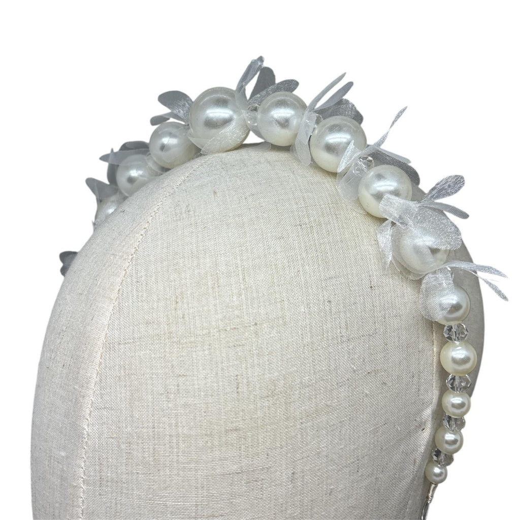 This headpiece is embellished with pearl and can be worn in multiple ways, such as woven through a braid or wrapped around a chignon. Its flexibility ensures a comfortable.